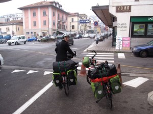Hierzu ist anzumerken, dass wir, gerade als der Tag sich zu Ende neigte, auf die ersten Veloreisenden trafen. Diese, unterwegs nach Norden, suchten sich ein ruhiges Plätzchen um deren Zelt zu stellen. Das Angebot stand, dass wir uns ihnen angesellen können. Jedoch waren wir noch nicht so weit, materiel (Food & Wasser) wie auch mental.