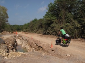 Patras liegt ja bereits auf der peloponnesischen Halbinsel, welche man per Fähre oder Brücke erreichen kann. Da auf der Brücke (Mautpflichtig) nirgendwo ein Fahrradverbot stand, entschieden wir uns kurzerhand für diese Variante. Die Dame an der Zahlstelle stutzte zwar ein wenig, lies uns aber passieren, um sonst. Einzig der starke Seitenwind wollte uns dann doch noch an der Überfahrt hindern. Wir aber hielten an unserem Plan fest.