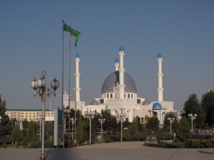 Mary erreichten wir dann am zweiten Tag nach nochmals viel Gegenwind und heissen Temperaturen. Die Stadt (zweit grösste in Turkmenistan) bietet aber nicht viel. Generell hat der Turkmenische Staatspresident so ziemlich die Diktatur übernommen und lebt seinen Grössenwahn in Prunkbauten und übertriebener Sauberkeit aus. Finanziert wird das Ganze mit Öl und Gas. Wohlverstanden profitiert aber nur eine Minderheit von diesem Reichtum, wobei die Leute auf dem Land mit dem Minimum auskommen. Ein Iraner hat mir mal treffen gesagt, dass sich Turkmenistan zu einem zweiten Nordkorea entwickle. Na ja, ganz so schlimm ist es nun doch noch nicht.