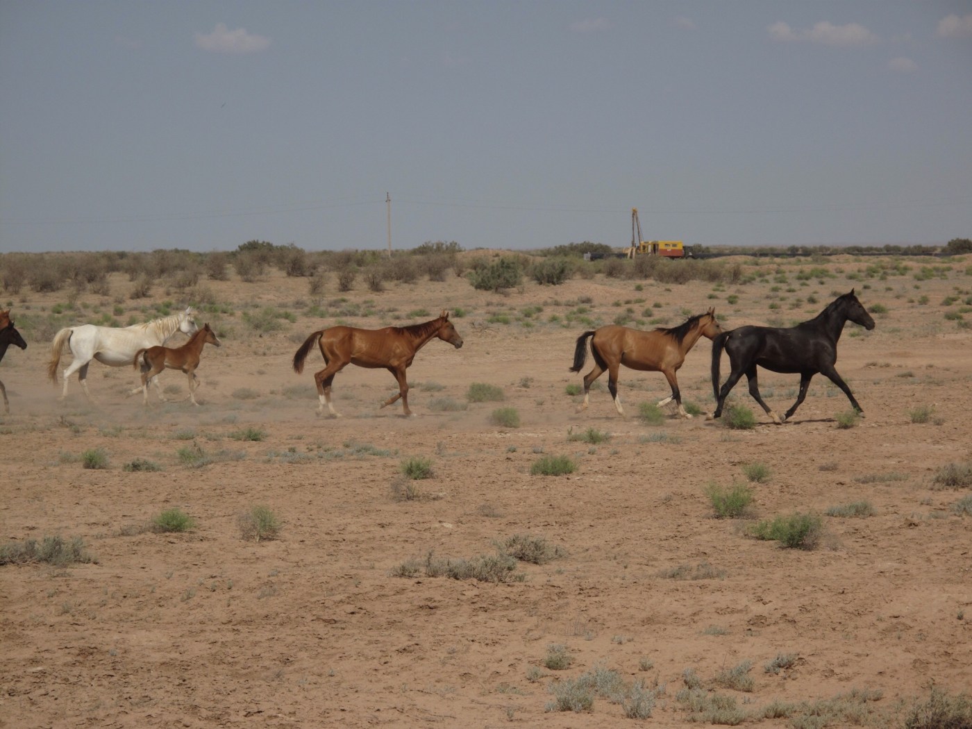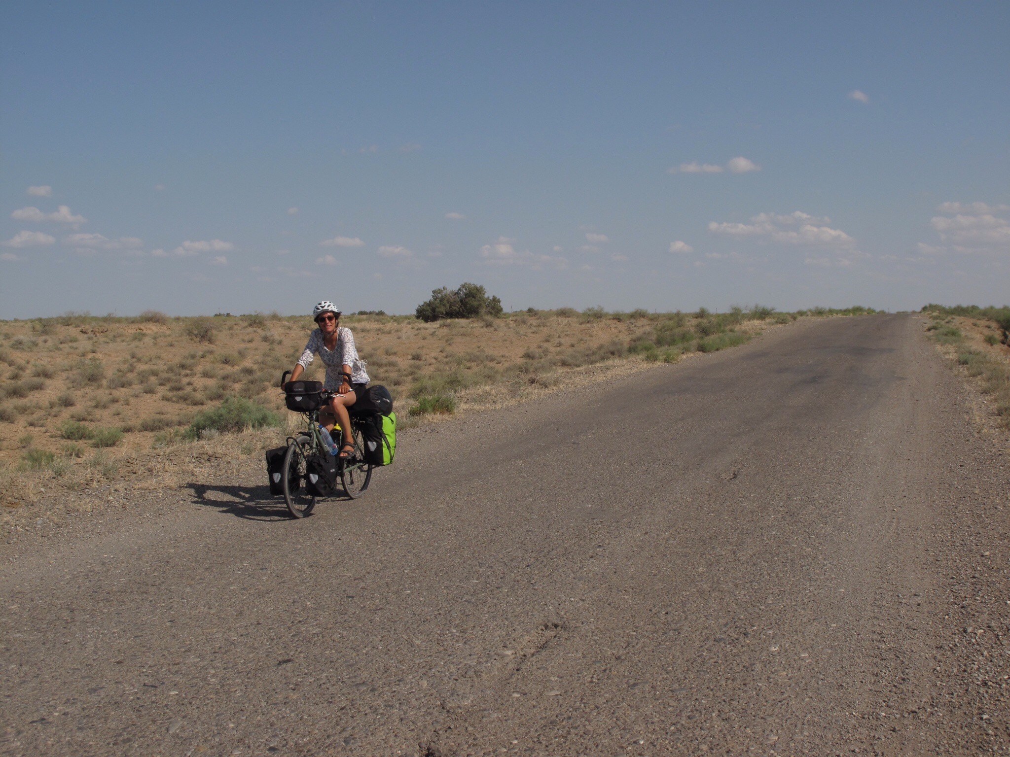 Los vom Grenzort Sarakhs gings gerade hoch Richtung Mary. Die nächsten 90km gingen durch eine trockene Steppenlandschaft ohne Möglichkeit irgendwo was zu kaufen. Wir bunkerten so viel Wasser auf unseren Velos wie möglich. Nur die Hitze, der Gegenwind und die schlechte Strasse forderten ihren Tribut. Unser Wasser wurde immer weniger und der Durst immer grösser. Just zur richtigen Zeit kam ein Lastwagen angebraust, hielt an und schenkte uns eine 1,5L Flasche kaltes Mineralwasser. Ein Geschenk des Himmels.