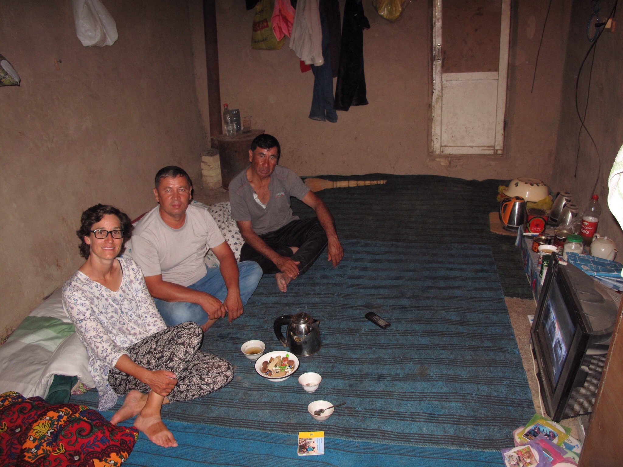 Für die Nacht schaften wir es aber nicht bis in die nächste Ortschaft. Aber auch in Turkmenistan konnten wir auf die Hilfe der Einheimischen zählen. So übernachteten wir bei zwei Geisshirten wo für Essen und Unterhaltung gesorgt war.