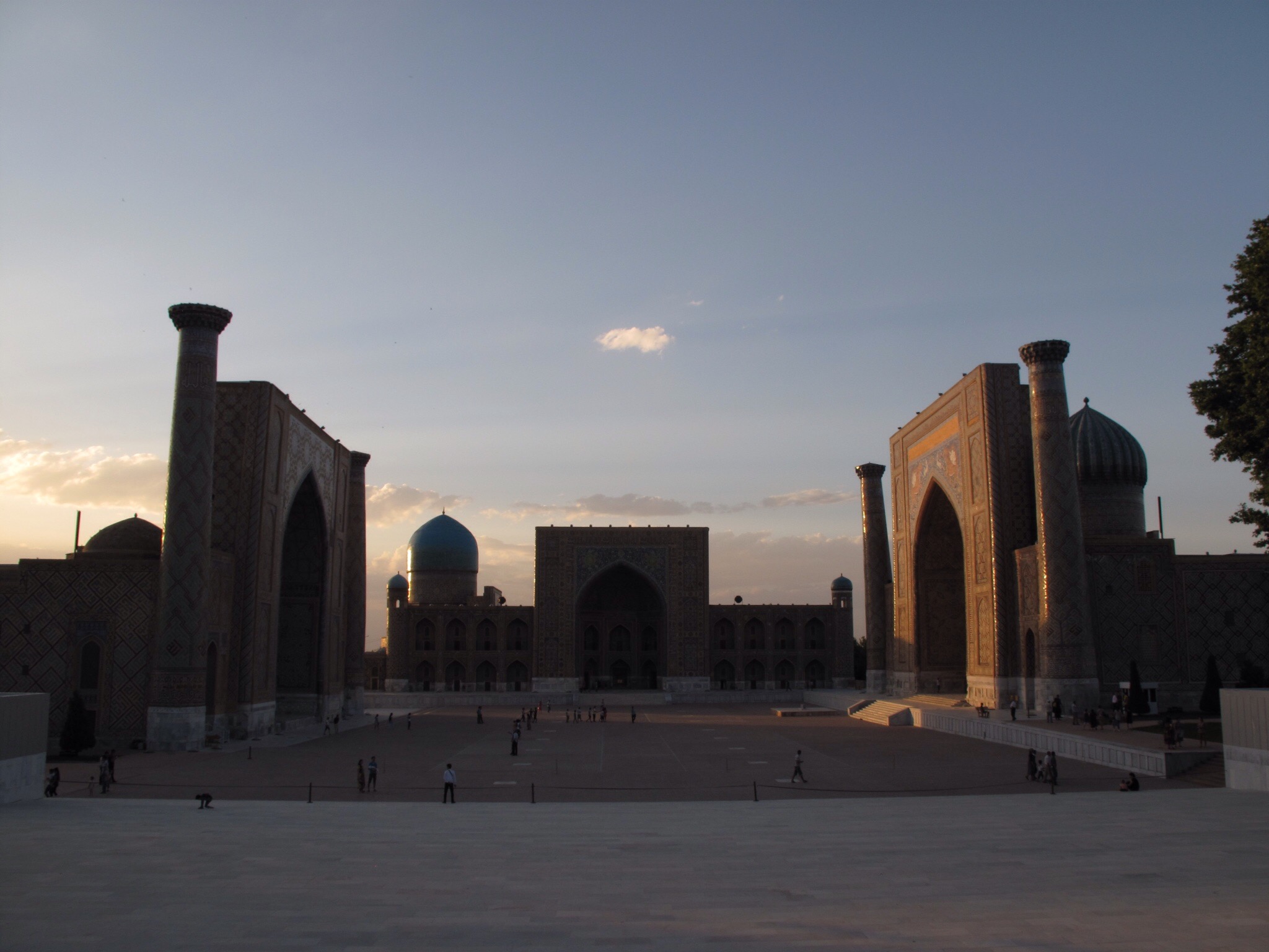 Gelegen auf einer Hochebene in 720müm, ist das Klima in Samarkand etwas erträglicher. Viele Herrscher erkannten die gute Lage der Stadt und so war diese von strategischer Wichtigkeit zu Zeiten der Perser, der Türken oder der Mongolen, bis 1868 dann die Russen die Region einnahmen. Als Knotenpunkt an der Seidenstrasse, lehrten hier grosse Professoren an den zahlreichen Universitäten (Madrasas) in Astrologie, Philosophie und Medizin.