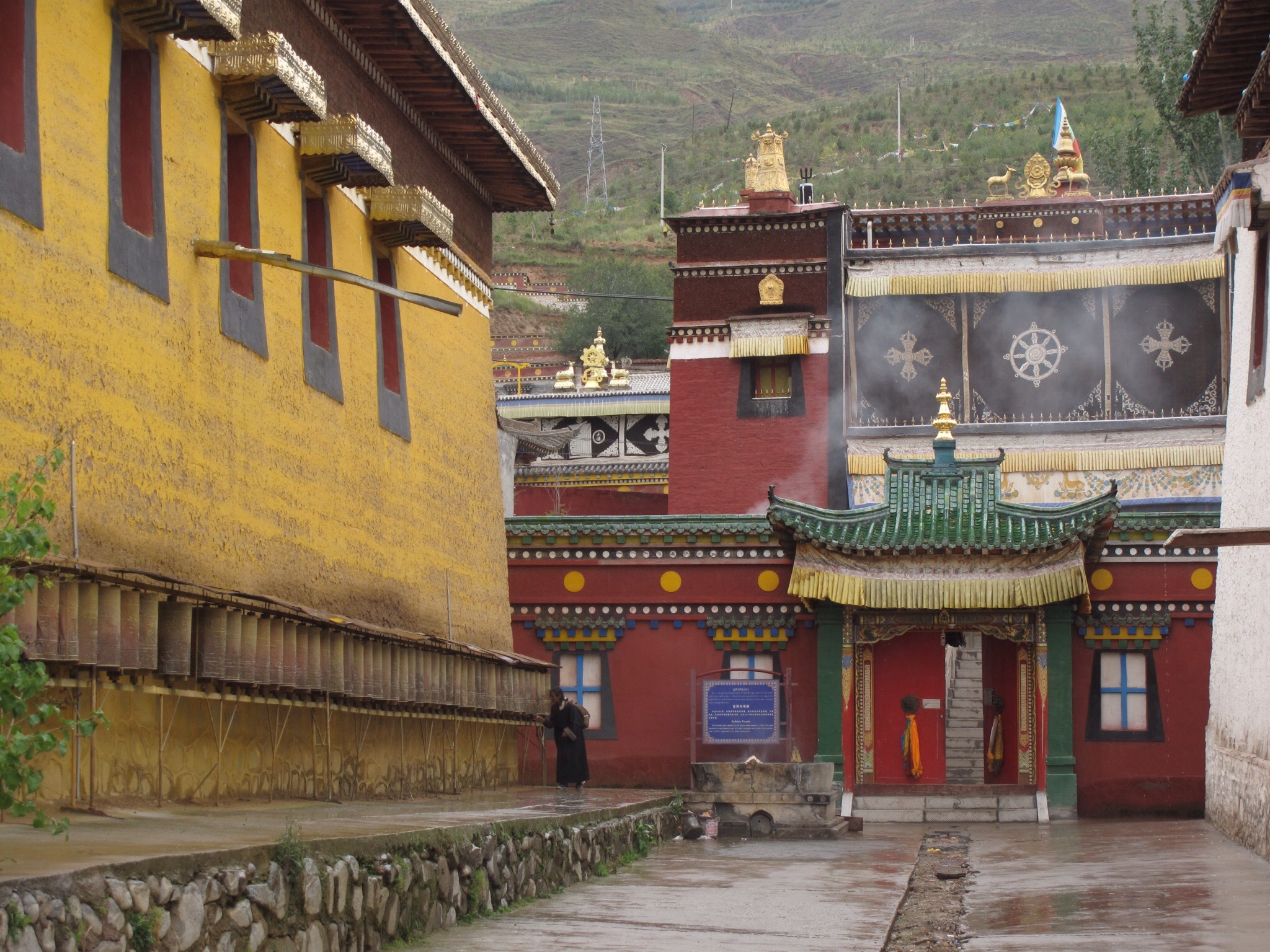 Die Reise führte uns weiter über drei Pässe (der höchste 3644 müm) nach Labrang (Xiahe). Eine Zweitagestour mit Zeltübernachtung, die es in sich hatte. Kaum stand das Zelt, fing es auch schon an zu Regnen und der Schnee folgte lückenlos. Unser Abendessen mussten wir roh verzehren an Kochen im Freien war nicht mehr zu denken – Rüebli, Brot und ein paar Guetzli. Das war nun wirklich Premiere.