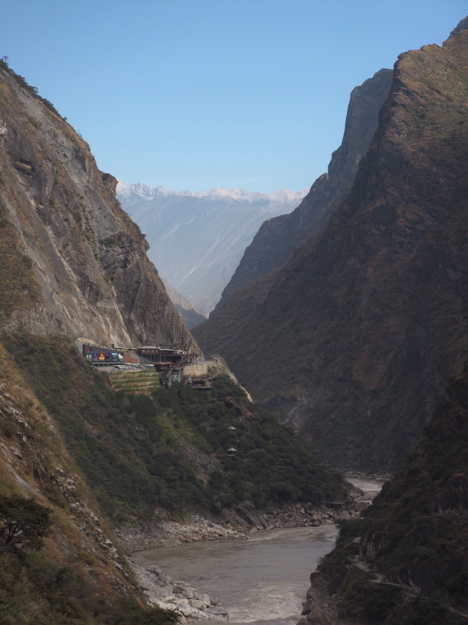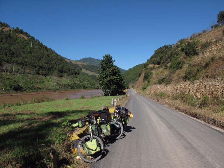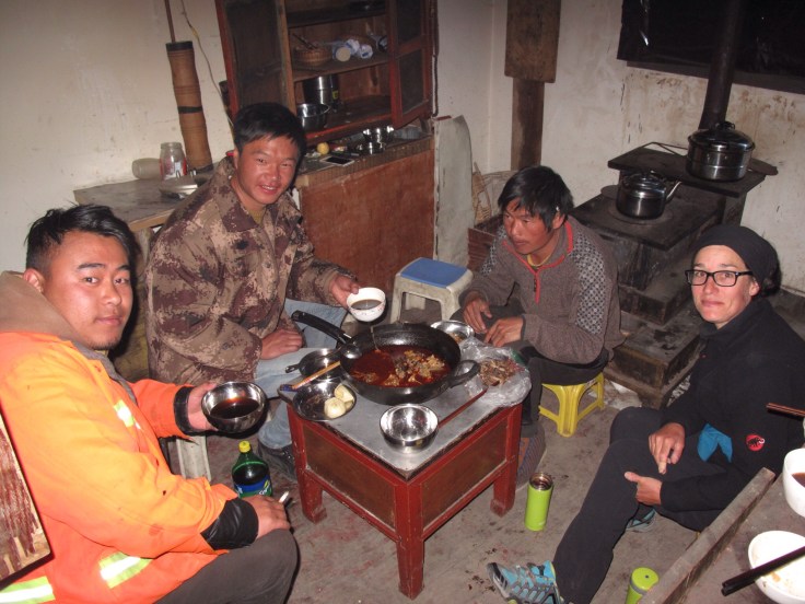 Um Lijiang zu verlassen brauchte es viel Überwindung. Die Nacht durch regnete es stark und die Progrosen meldeten kein Ende für die kommenden zwei Tage. Am Morgen war es Nieselregen, jedoch kaum ausserhalb des Ortes prasselte das Wasser nur so auf uns runter. Somit absolvierten wir nur 25 Km und mussten im einzigen Ort auf dieser Strecke ein Zimmer nehmen. Die Betten hatten Heizdecken sonst war alles kalt. Wir kochten unser Essen im Zimmer auf dem Plattenboden und verkrochen uns dann auch bald in den etwas wärmeren Betten. Dusche gabs nicht und die Toilette war auf der Etage – nicht gerade die schönste. Egal wir waren am Trocknen und draussen wütete das Unwetter weiter.