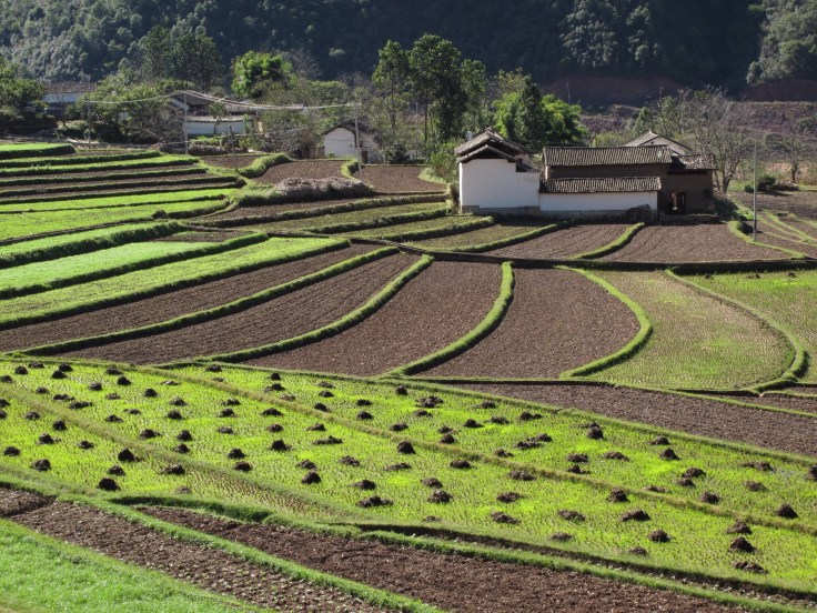 Nach 4 Tagen ging es Körndle wieder besser und wir setzten unsere Reise fort. Kunming war die nächste Destination, welche wir in 5 Tagen erreichen wollten. Die Strecke wurde uns als mühsam beschrieben. Baustellen und viel Verkehr sollte uns erwarten. Die ersten zwei Tage waren jedoch sehr angenehm. Die Strasse führte uns durch Landschaften gespickt mit kleinen Seen, grünen Hügeln und vielen Reisterrassen. Auch fanden wir an beiden Tagen gute Zeltplätze welche uns eine angenehme Nachtruhe bereiteten. Dann aber kam die angekündigte Baustelle. Gute 30km lang wurde an einer neuen Strasse gebaut. Die Alte war bereits weggerissen, so dass der ganze Verkehr über die noch im Rohbau befindliche Strasse ratterte. Zudem war es nun fast unmöglich einen geeigneten Platz fürs Zelt zu finden. Als es bereits dunkel war, buchten wir uns wiedermal in ein Hotel. Ausserdem entschieden wir uns am nächsten Tag den Bus für die letzten 200km nach Kunming zu nehmen.