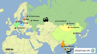 Am Montag 15. Mai stechen wir wieder in hohe See. Diesmal ab in den Norden, quer durch Deutschland nach Preez an die Ostsee. Von da radeln wir alles dem Meer entlang durch Polen, Litauen, Lettland und Estland. Sofern Putin uns gnädig ist, reisen wir über St. Petersburg nach Moskau wo wir die Fahrräder gegen ein Zugsabteil tauschen und mit der Transsibirischen Eisenbahn an den Baikalsee dampfen. Einmal um den See geradelt (falls die Tage im Visum es erlauben) geht die Bahnreise weiter nach UlaanBaatar (Mongolei). Hier steigen wir erneut auf die Drahtesel und radeln über China weiter bis wir Anfangs Dezember Bangkok erreichen. Läuft alles nach Plan, verbringen wir Weihnachten 2017 in Neuseeland.