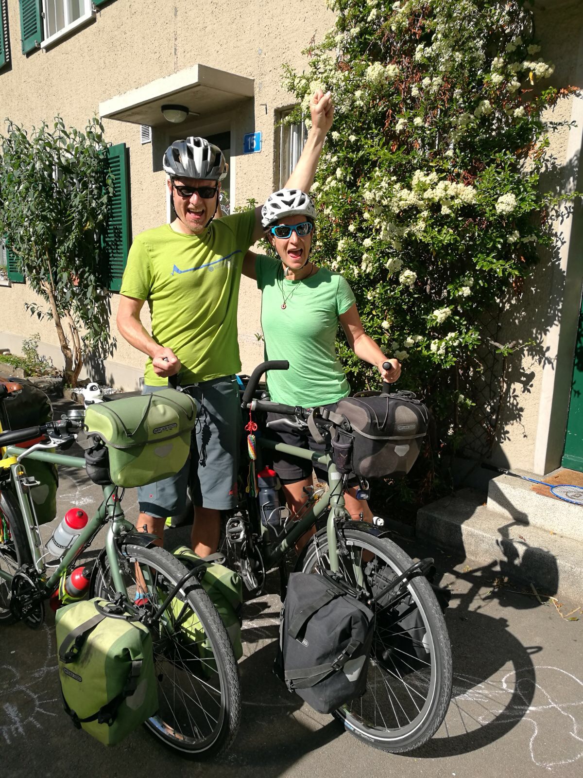 Ja hier an der Ostsee ist das Wetter ein Thema für sich. Im täglichen, nein stündlichen Wechsel tauschen sich Regen und Sonnenschein. Die einzige Konstante dabei ist der Wind. Und so kam es auch, dass wir verschwitz vom fahren und durchnässt vom Regen bei Eckhart in Rendsburg an der Tür klingelten. Nach einer wärmenden Dusche, die Kleider fein säuberlich gehängt, die Schuhe mit Zeitungen ausgestopft, zeigte sich aber bereits wieder die Sonne, draussen wie auch in uns drin. Mit Fleisch vom Grill und leckerem Couscoussalat rundete Eckhart den Abend für uns ab.
