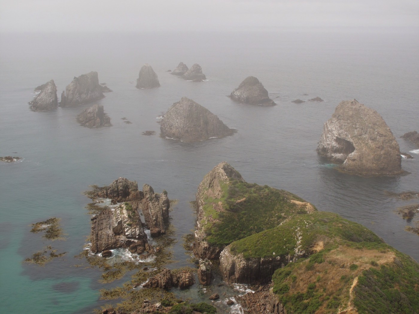 Vor der Curion Bay trennten sich dann unsere Wege wieder. Und so schwamm ich alleine mit den Delfinen in besagter Bay und hielt abends Ausschau nach Gelbaugenpinguine. Sowieso, der Küstenabschnitt genannt Catlins ist etwas vom abwechslungsreichsten was Neuseeland zu bieten hat. Grüne Hügel mit Vieh und Schafen im Hinterland, steile Küsten und verlassene Strände am Meer. Atemberaubend!