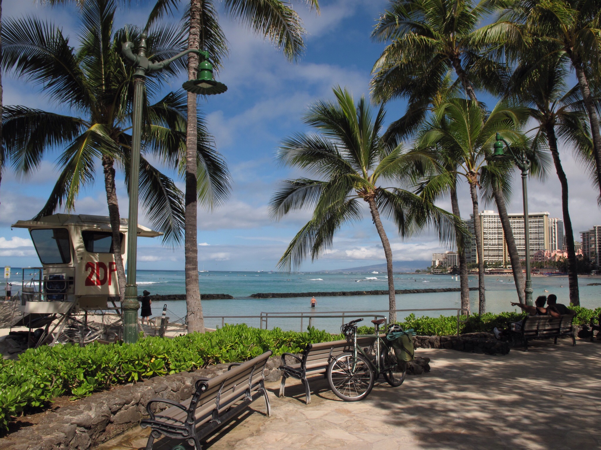 Nun, angekommen in Honolulu wollte ich eigentlich das Fahrrad gar nicht erst auspacken, sondern mich auf den öffentlichen Verkehr verlassen. Bereits vor Abflug aber, fand ich heraus, dass die Busse in Hawaii keine grossen Gepäckstücke transportieren. Also keine Fahrradboxen, aber auch keine grossen Koffer. So baute ich schlussendlich mein Velo doch zusammen und radelte die gut 20km durch die Stadt zu meinem nächsten Gastgeber.